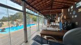 PISCINA GRANDE COM AREA DE CADEIRAS E MESAS