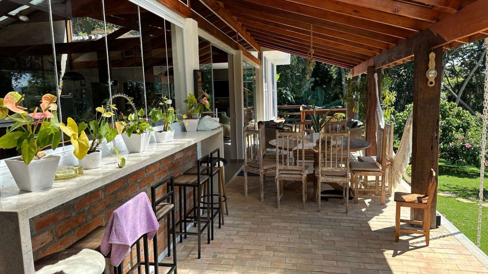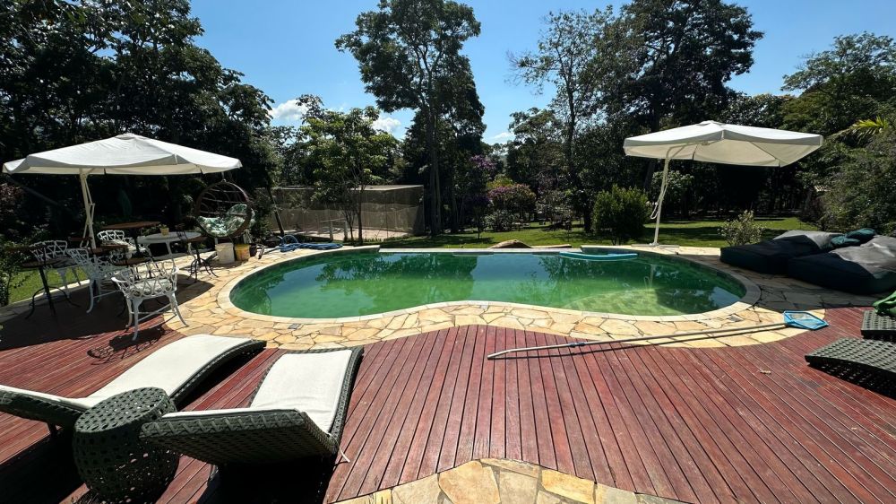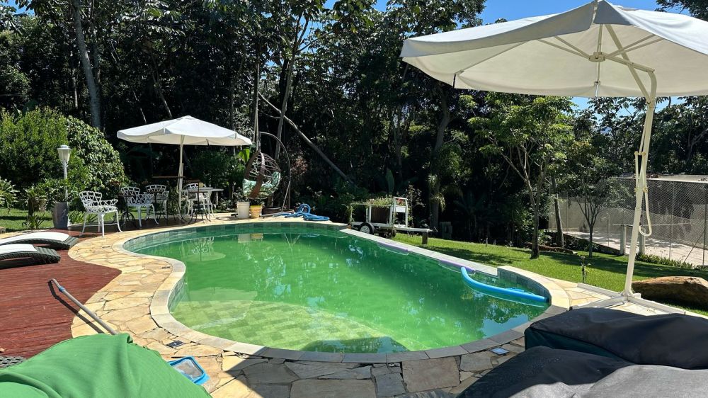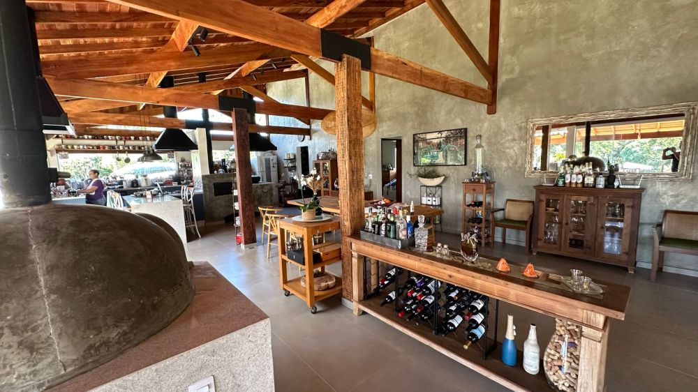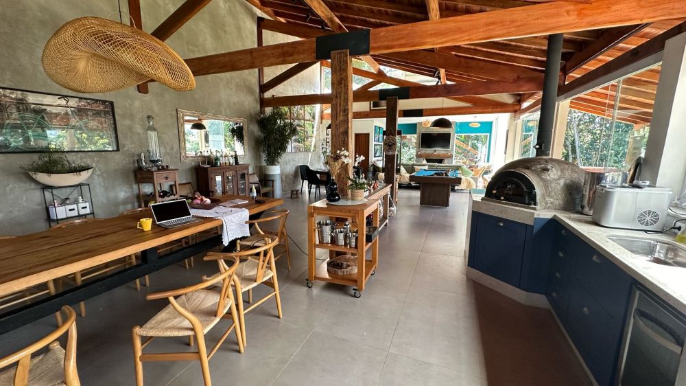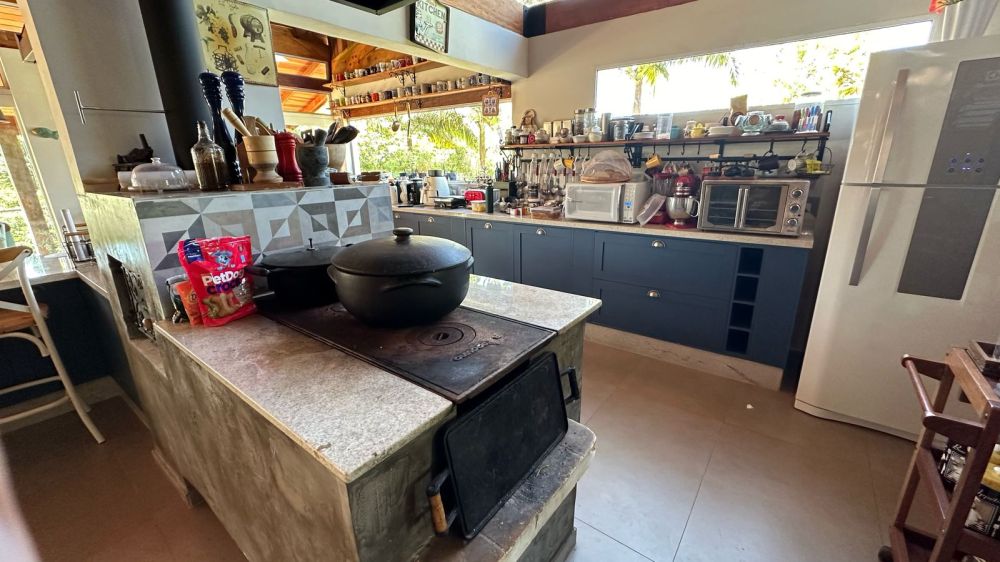 CASA PRINCIPAL CONTA COM ESTACIONAMENTO COBERTO - 300 MTS APROXIMADAMENTE DE OBRA - 3 SUÍTES - COZINHA COM ÁREA GOURMET MUITO AMPLA E SALA ENORME - LAREIRA - FOGÃO A LENHA E FORNO DE PIZZA ????- + UM BANHEIRO SOCIAL E UM BANHEIRO PRA PISCINA